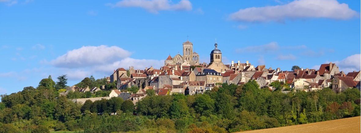 La Basilique Sainte-Marie-Madeleine de Vézelay et sa colline classée au patrimoine mondial par l’UNESCO, point de départ d’une des principales voies du chemin de Saint Jacques de Compostelle. XIIème siècle. (60 km / 1 h)